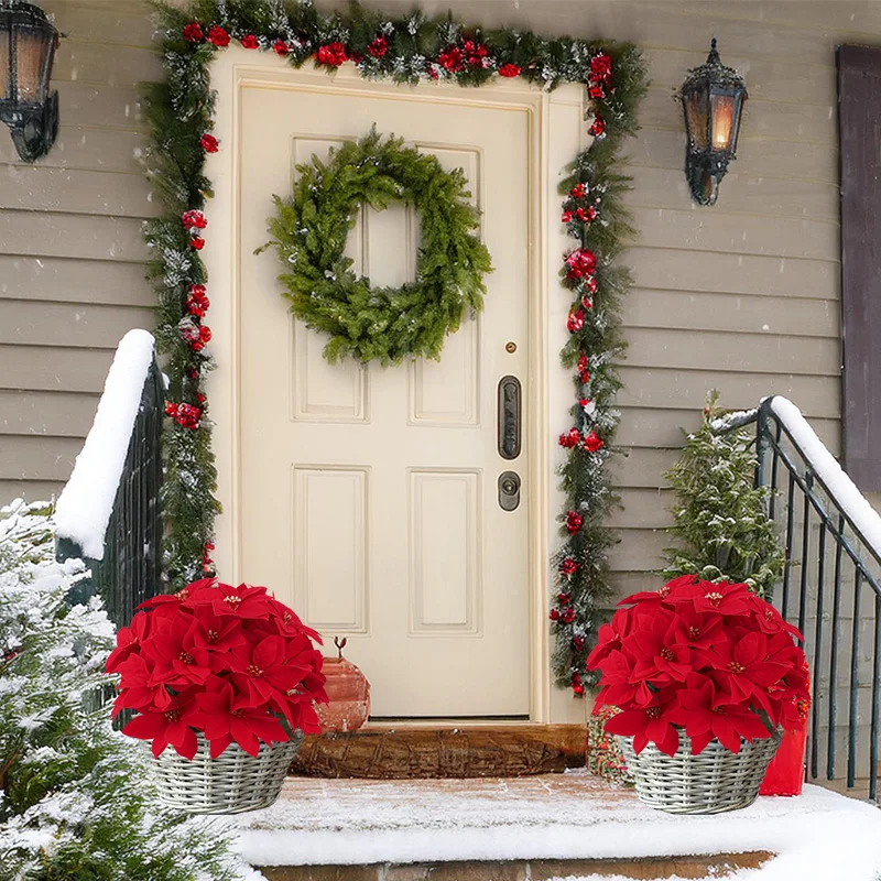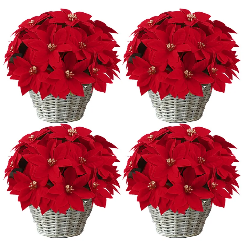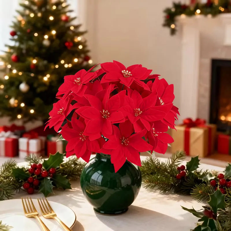 1-5 Bundles Artificial Red Poinsettia Bouquets